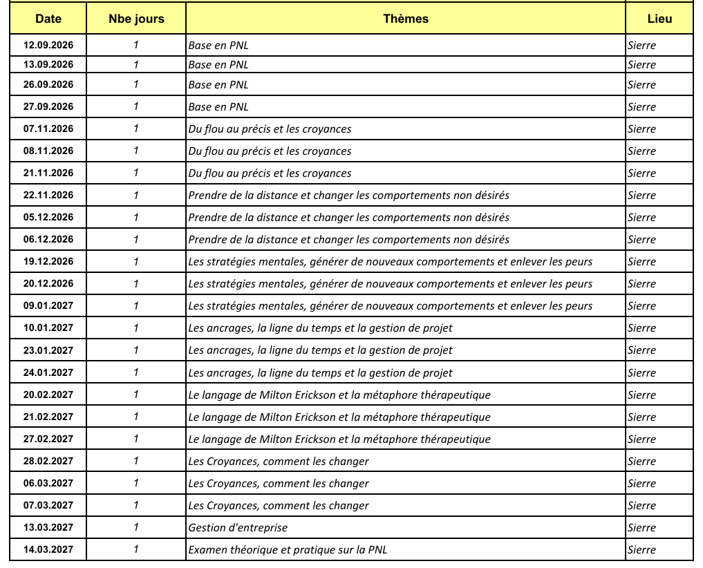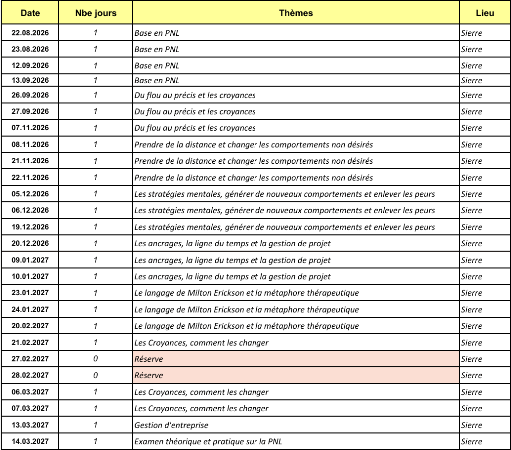 En 24 journées motivantes, vous apprendrez les techniques de base en PNL et du Praticien en PNL.
